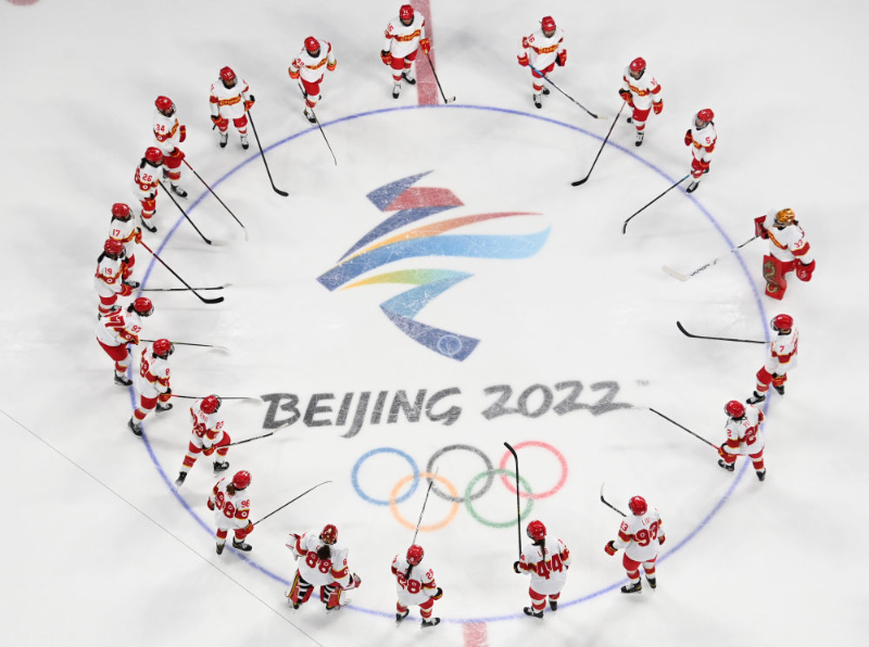 北京2022年冬奧會(huì)是迄今女性參賽比例最高、參與項(xiàng)目最多的一屆冬奧會(huì)。圖為中國國家女子冰球隊(duì)在賽場(chǎng)。