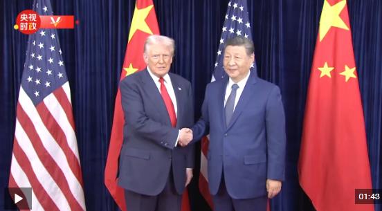 當?shù)貢r間10月30日上午,國家主席習近平在釜山同美國總統(tǒng)特朗普舉行會晤。