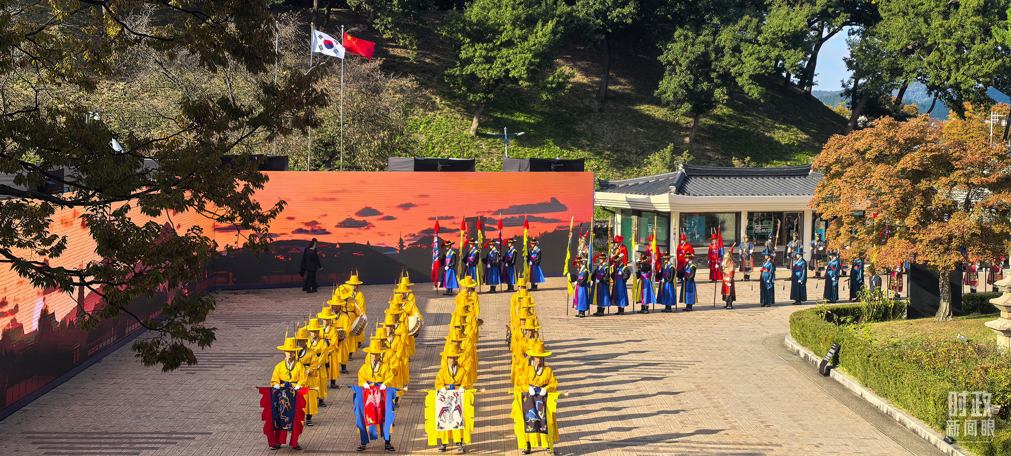 在慶州博物館的千年微笑館,李在明總統(tǒng)為習主席舉行高規(guī)格歡迎儀式,身著傳統(tǒng)民族服飾的韓國禮儀隊,隆重歡迎習主席到來。