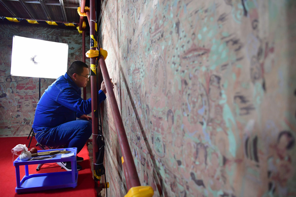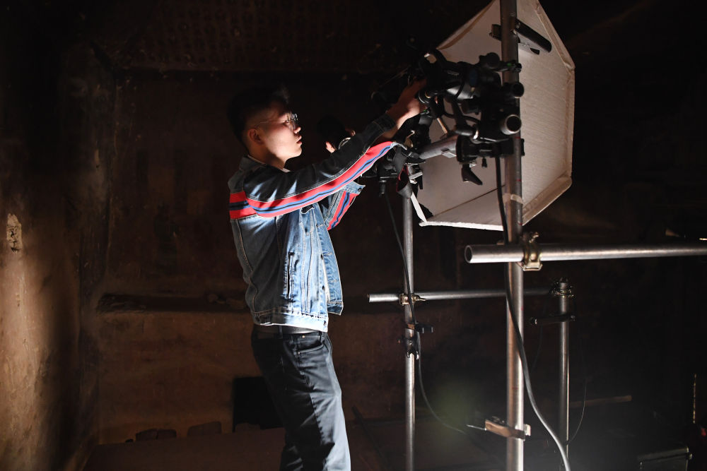 2023年4月25日,敦煌研究院文物數(shù)字化保護(hù)團(tuán)隊(duì)圖像采集人員熊業(yè)騰在洞窟內(nèi)調(diào)試設(shè)備,準(zhǔn)備采集壁畫圖像。30多年前,敦煌研究院便嘗試以數(shù)字技術(shù)讓古老石窟“芳華永駐”。2016年,“數(shù)字敦煌”資源庫上線,首次向全球免費(fèi)共享30個(gè)敦煌石窟的高清圖像和全景漫游,用戶足不出戶就能欣賞到高清的敦煌文化數(shù)字資源,目前訪問用戶遍布全球78個(gè)國家,累計(jì)訪問量超過2000萬次。