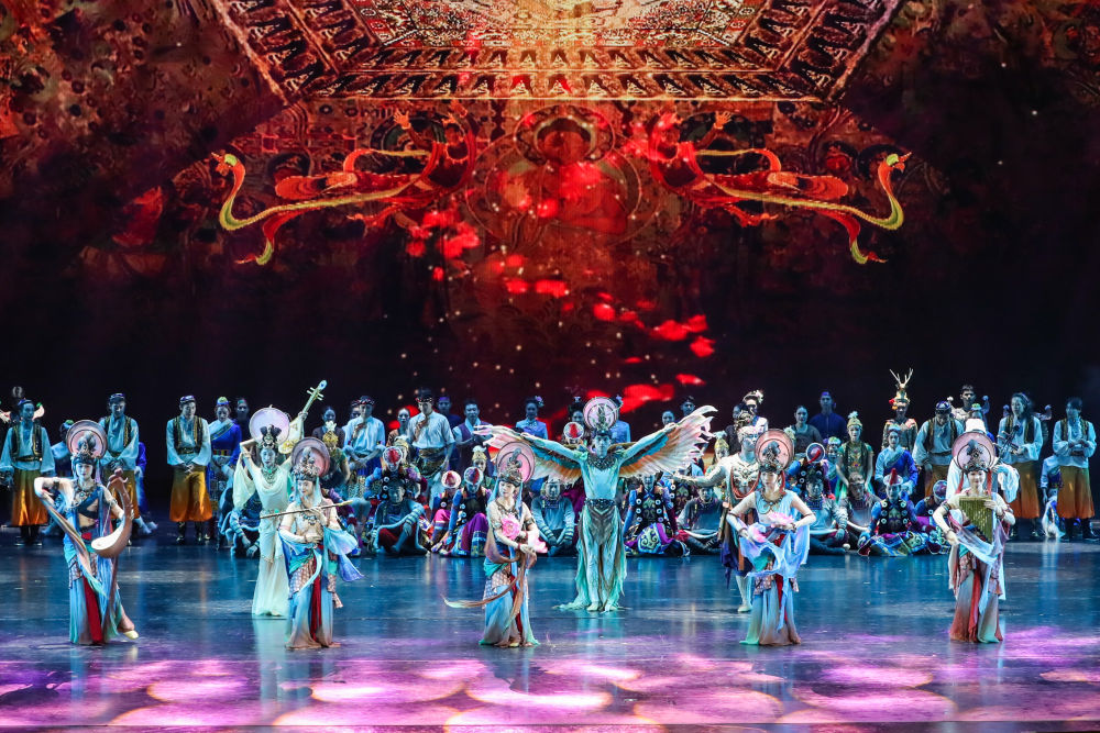 2025年9月20日,演員在敦煌大劇院表演新版《絲路花雨》。1979年,大型民族舞劇《絲路花雨》在中國西北誕生。編創(chuàng)者們從敦煌莫高窟的壁畫和彩塑中尋找靈感,將壁畫上凝固了千年的舞姿,轉(zhuǎn)化為動態(tài)舞蹈語言。40多年來,《絲路花雨》累計(jì)演出超4000場,足跡遍布40多個(gè)國家和地區(qū),被譽(yù)為“中國舞劇的里程碑”和“活的敦煌壁畫、美的藝術(shù)享受”。此次新版歷經(jīng)兩年半創(chuàng)排,通過復(fù)原與創(chuàng)新對經(jīng)典藝術(shù)進(jìn)行當(dāng)代詮釋,彰顯了中華優(yōu)秀傳統(tǒng)文化的生命力。