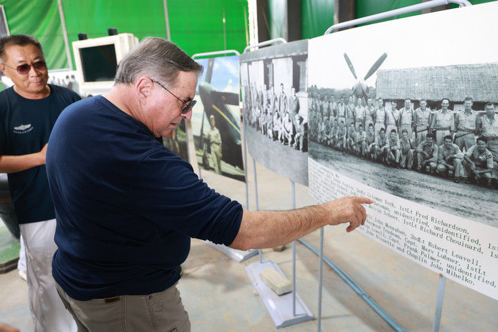 2025年7月16日,美中航空遺產(chǎn)基金會(huì)主席杰夫·格林在貴州黃平舊州機(jī)場查看飛虎隊(duì)資料照片。抗戰(zhàn)時(shí)期,舊州機(jī)場主要承擔(dān)飛機(jī)加油、彈藥補(bǔ)充和維修任務(wù)。常駐于此的美國飛虎隊(duì)?wèi)?zhàn)機(jī)頻頻在該機(jī)場起降,參加了湘西會(huì)戰(zhàn)、衡陽保衛(wèi)戰(zhàn)等著名戰(zhàn)役。該機(jī)場見證了中美聯(lián)合反抗法西斯的光輝歷史,還為確?!榜劮搴骄€”的順利暢通發(fā)揮了舉足輕重的作用。