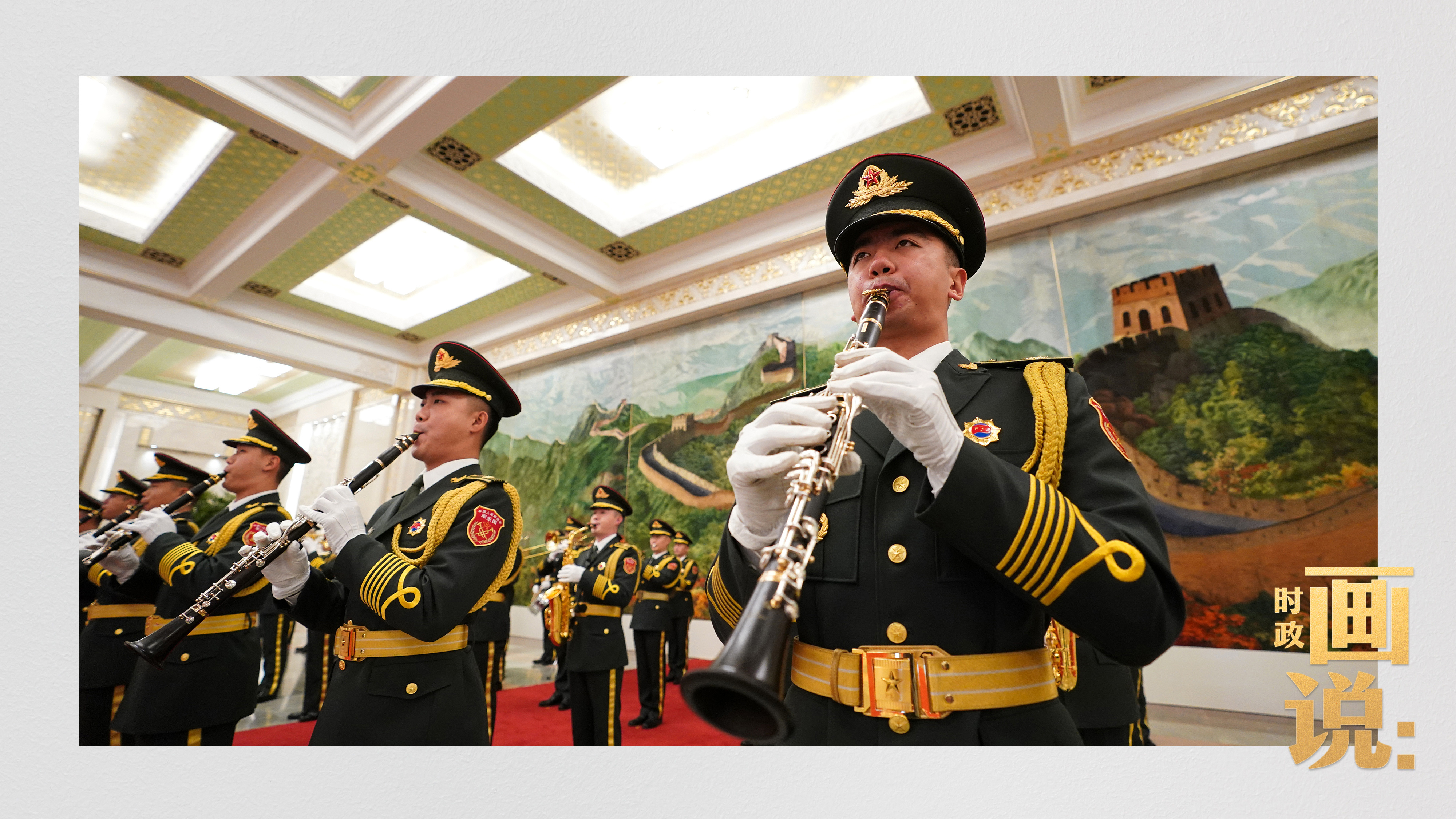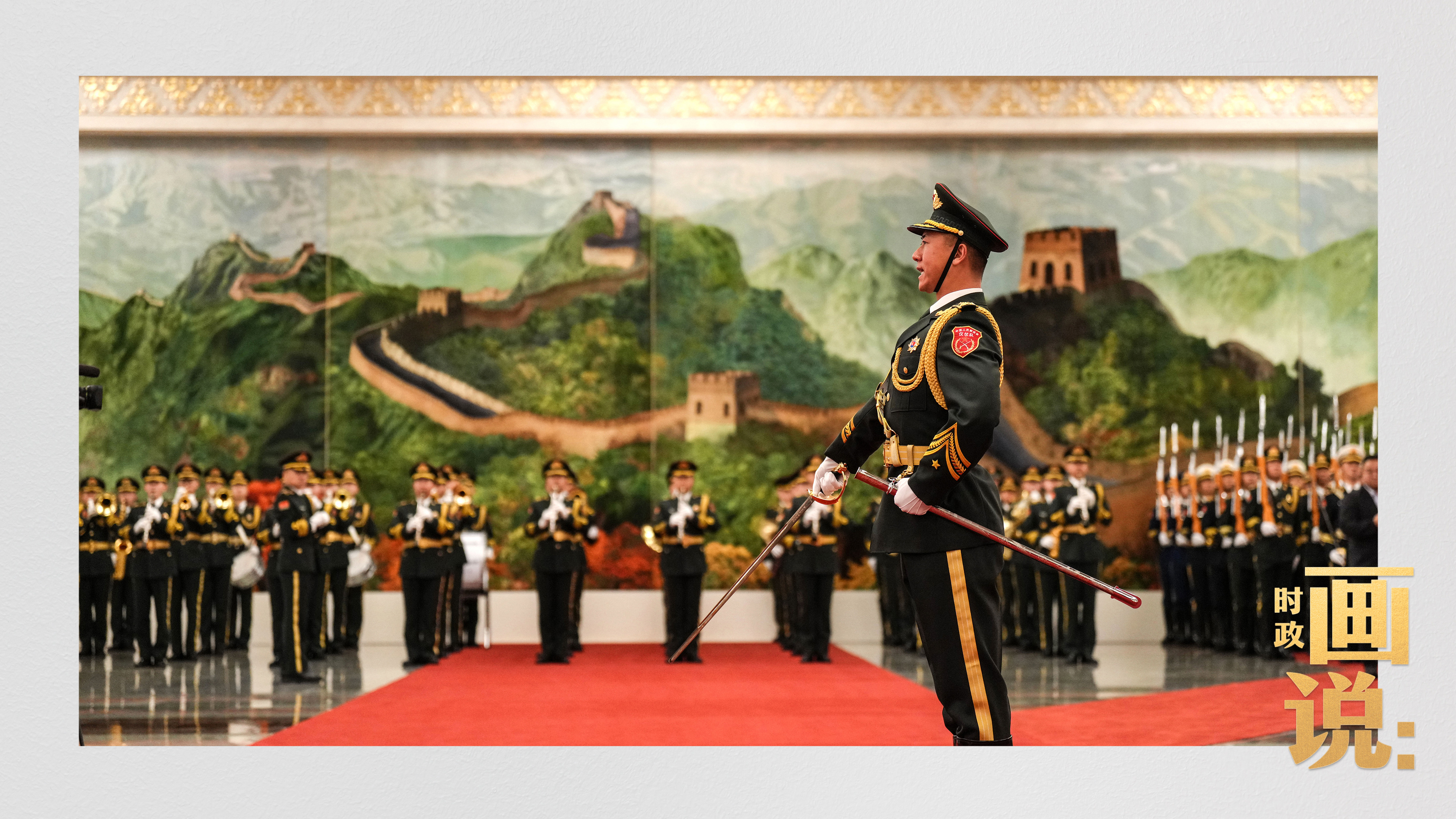 △馬克龍?jiān)诹?xí)近平陪同下檢閱中國(guó)人民解放軍儀仗隊(duì)并觀看分列式
