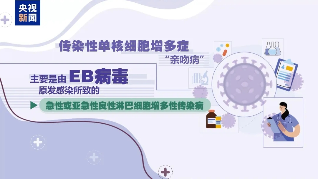 “親吻病”即傳染性單核細(xì)胞增多癥,主要是由EB病毒原發(fā)感染所致的急性或亞急性良性淋巴細(xì)胞增多性傳染病,EB病毒主要通過密切接觸病人唾液傳播。