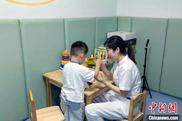 6月6日,在南昌大學第一附屬醫(yī)院贛江新區(qū)醫(yī)院,醫(yī)護人員為孤獨癥兒童提供康復(fù)幫扶。江西省殘疾人福利基金會 供圖