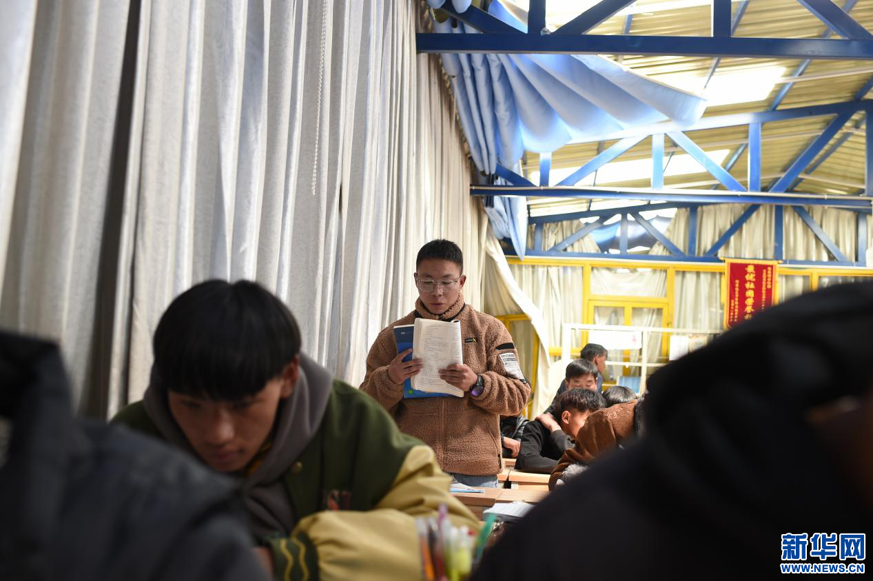 在西藏阿里岡底斯藏醫(yī)教學院,一名學生在朗讀課文(4月20日攝)。新華網(wǎng) 旦增努布攝
