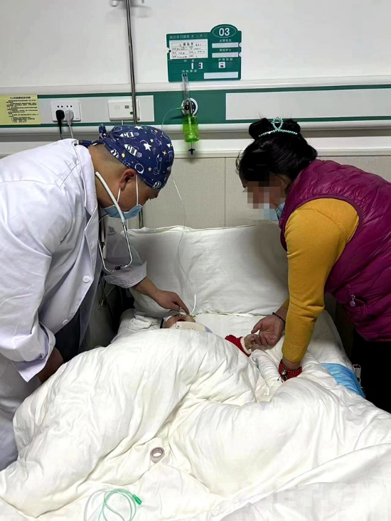 手術(shù)順利結(jié)束,看著醫(yī)護(hù)人員把才巴央措從手術(shù)室推出來,母親卓巴雙手合十并不停對(duì)著醫(yī)護(hù)人員說 “噶真切”“噶真切”,醫(yī)護(hù)人員也面帶欣慰的微笑,用一兩句簡單的藏語回應(yīng)著卓巴,看著病床上熟睡的才巴央措,卓巴輕撫孩子臉頰哽咽落淚。