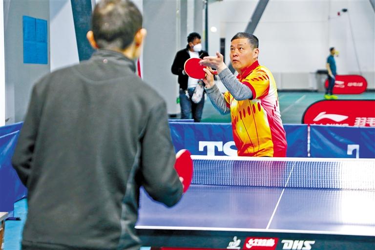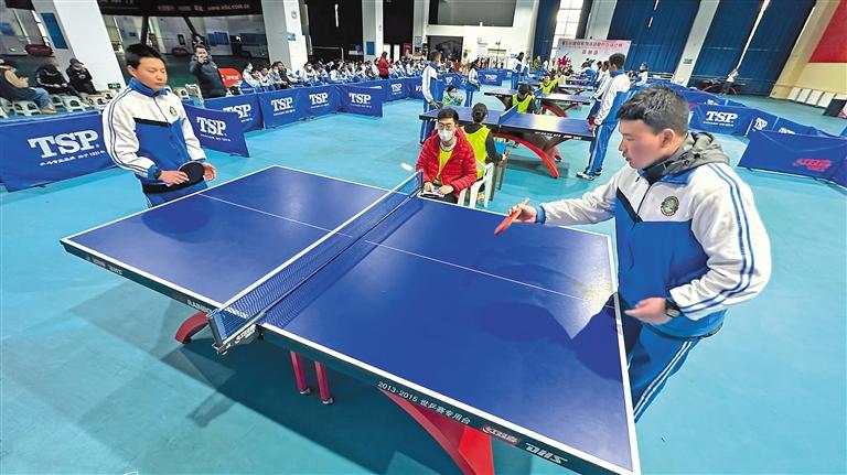 成人男子組在進行乒乓球比賽。