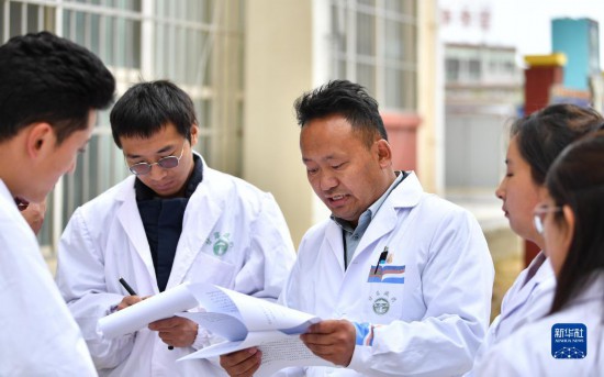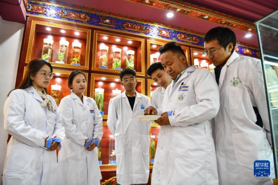 普窮次仁和學生們一起學習中醫(yī)藥相關政策(4月20日攝)。新華社記者 晉美多吉 攝