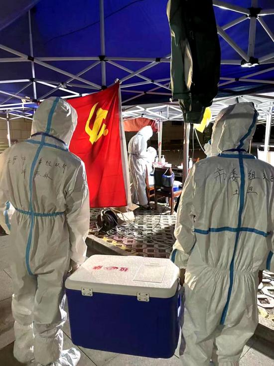 圖為黨旗飄揚(yáng)在核酸檢測點(diǎn)上攝影:普瓊