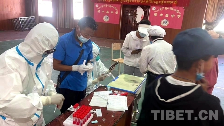 圖為尼木縣中學(xué)師生在校封閉管理期間按照要求進(jìn)行核酸檢測(cè) 拉薩市尼木縣中學(xué)供圖