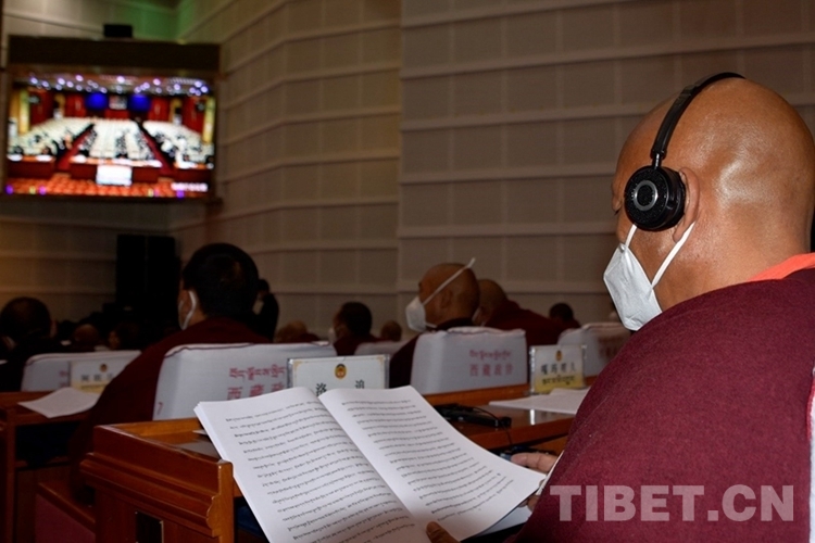 圖為政協(xié)第十二屆西藏自治區(qū)委員會第一次會議開幕會現(xiàn)場,政協(xié)委員認(rèn)真審閱藏文版工作報告 攝影:次旦拉姆
