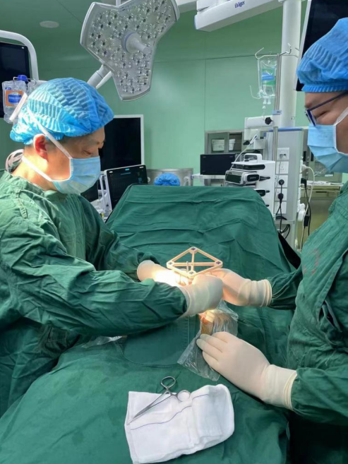 圖為吳宏華主任術(shù)中于健側(cè)髂后上級置入信號收集裝置