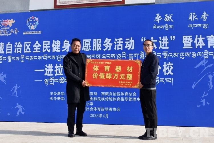 活動(dòng)開幕式現(xiàn)場,西藏自治區(qū)體育局社體中心向拉薩市實(shí)驗(yàn)小學(xué)東城分校,配發(fā)了價(jià)值四萬元整的校園體育器材,保障學(xué)生日常體育運(yùn)動(dòng)需要?! ?/p>