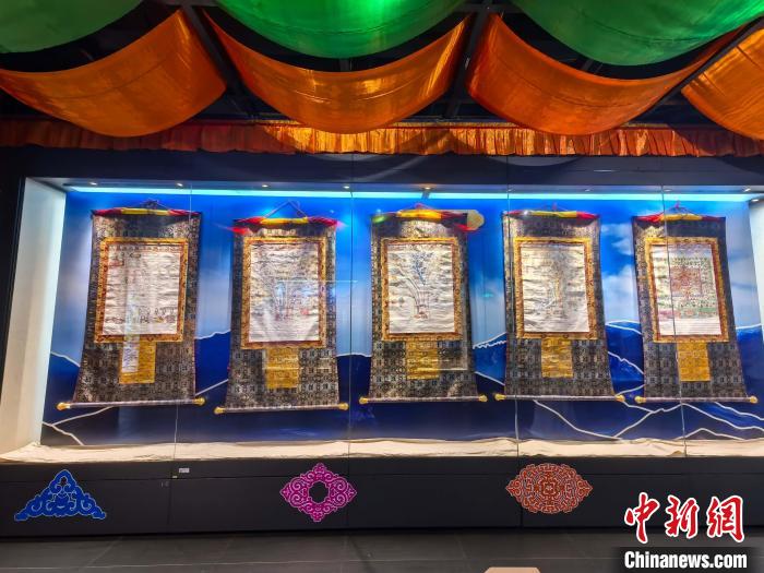 展覽現(xiàn)場展示的五幅珍貴曼唐。廣州中醫(yī)藥大學(xué)供圖