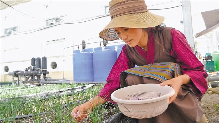 眼下,走進(jìn)位于薩迦縣扯休鄉(xiāng)的藏紅花種植基地,一朵朵紫色小花內(nèi)生長(zhǎng)著紅色的花絲,色澤鮮亮、香氣濃郁。據(jù)悉,在上海援藏干部與上海醫(yī)藥旗下的上海市藥材有限公司支持下,“匯愛薩迦·藏紅花種植項(xiàng)目”于2023年在薩迦縣扯休鄉(xiāng)落成?;亟衲甑漠a(chǎn)量在去年的基礎(chǔ)上增加了20%到30%,產(chǎn)品的品質(zhì)、花絲的長(zhǎng)度以及所含的有效成分都非常理想。隨著這些“紅色寶藏”迎來一次又一次的豐收,將帶動(dòng)更多當(dāng)?shù)厝罕妼?shí)現(xiàn)就業(yè)增收。