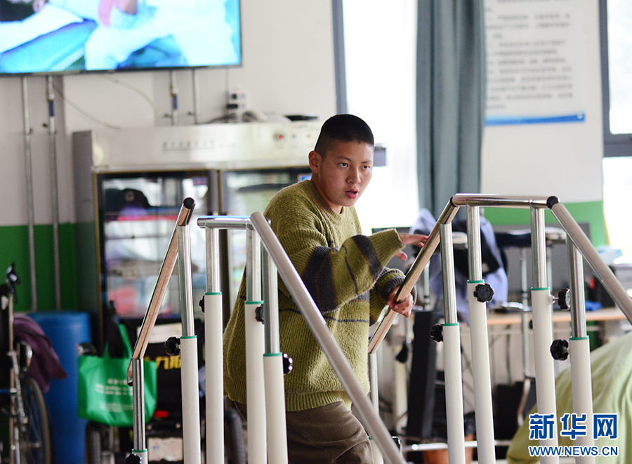 托養(yǎng)人員在進行康復訓練(5月16日攝)。新華網(wǎng) 柑丹鴦琦 攝