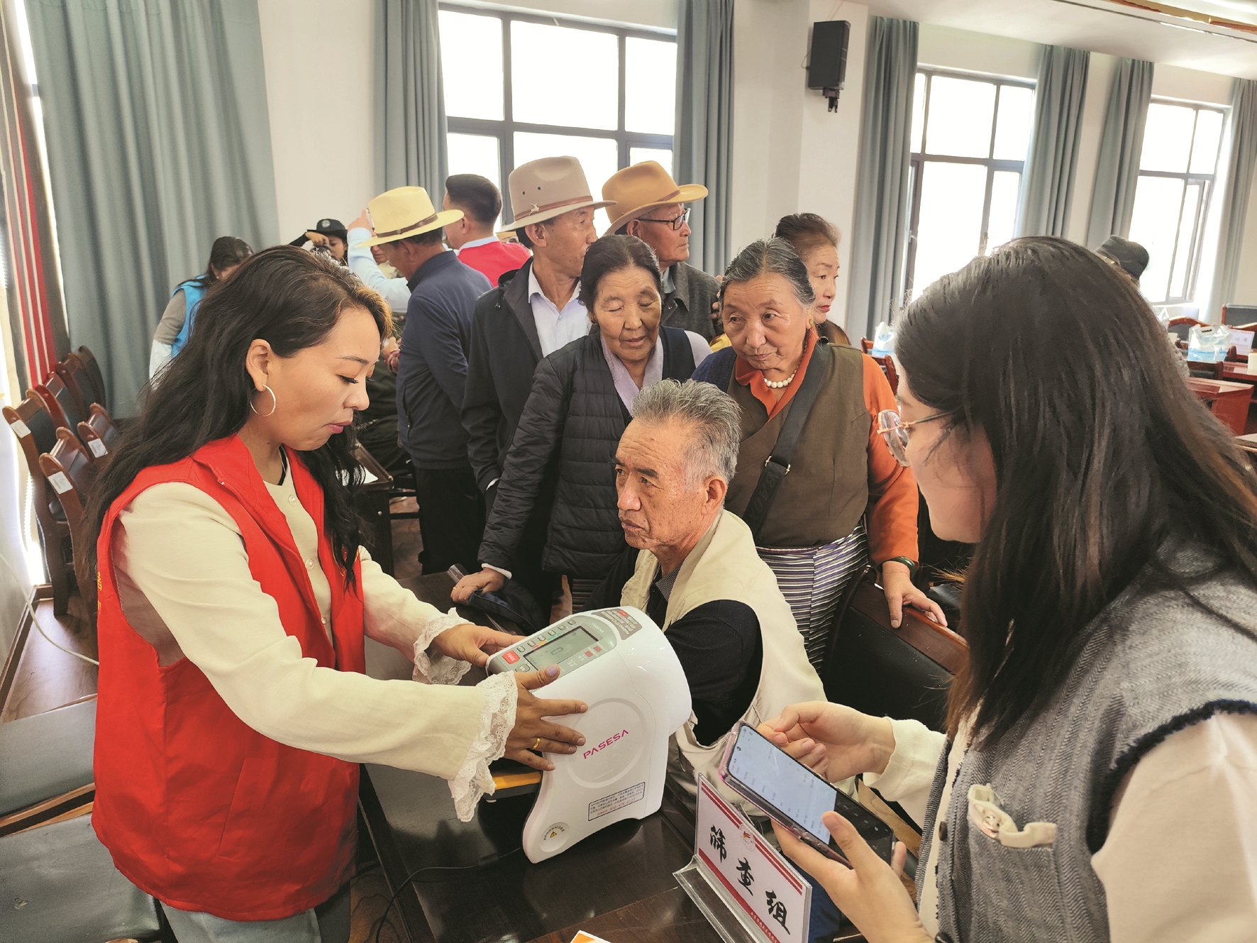圖為志愿者為老人們進(jìn)行動脈硬化篩查。拉薩融媒記者 齊永昌 攝