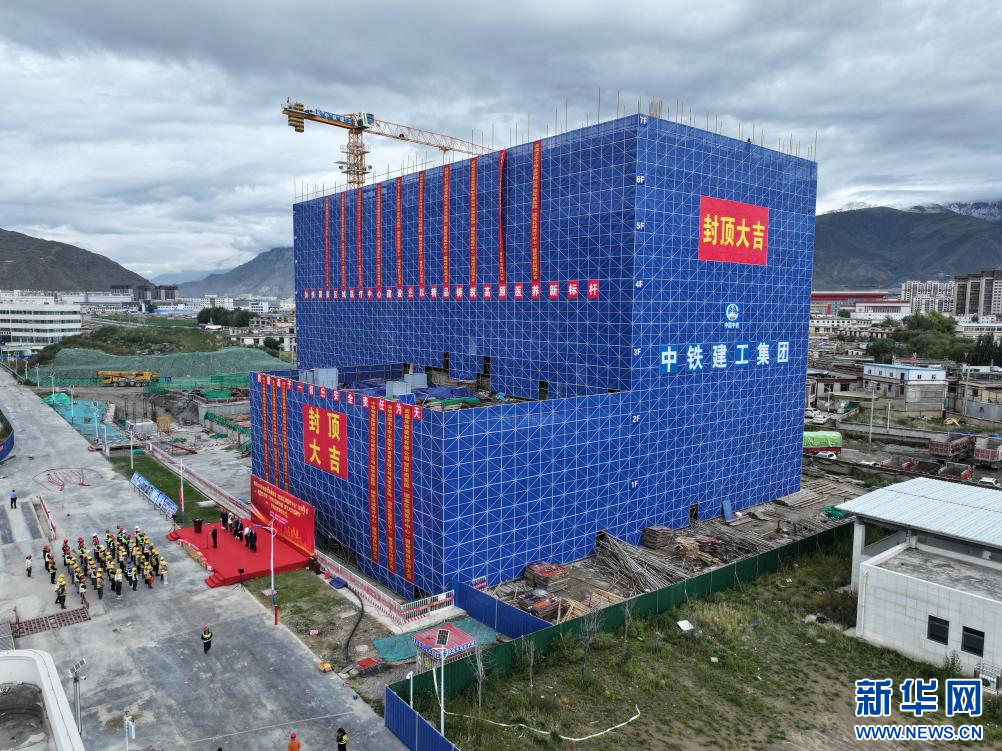 四川大學華西醫(yī)院西藏醫(yī)院(國家區(qū)域醫(yī)療中心)主體結(jié)構(gòu)封頂現(xiàn)場。(中鐵建工集團供圖)
