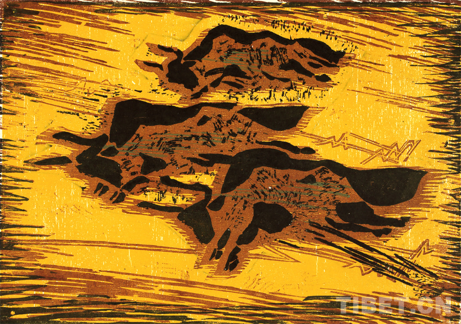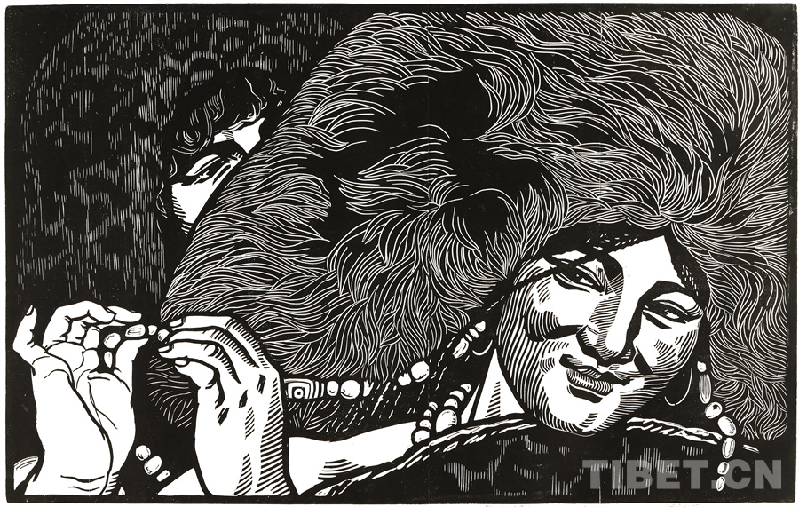 這些年來可以肯定的是我的創(chuàng)作道路和方向是基本對頭的。前幾年有人寫文章評論說,在外來思想影響已很豐富、多元化格局已經(jīng)形成的情況下,差不多只有版畫還恪守著現(xiàn)實主義的創(chuàng)作道路,而且在美術(shù)領(lǐng)域起到了導向作用。順便為版畫說句話:搞版畫的人一直尊重生活,認定生活是第一性的,版畫一開始就是在革命的環(huán)境中發(fā)生、發(fā)展起來的。版畫隨著四大發(fā)明發(fā)源于中國的土壤,后來被歐洲發(fā)展了,反過來又影響到中國。老大的中國有發(fā)明權(quán),但并沒有把它發(fā)展起來。魯迅先生為了推動版畫的發(fā)展,特別介紹了德國版畫和俄羅斯版畫為代表的版畫代表作和代表人物,還有美國的肯特,比利時的麥綏萊爾。介紹文字很精彩,無論對生平、對作品的介紹都很精彩。他推出的那些版畫大師,至今仍巍然屹立在美術(shù)史上。他對版畫的深刻而獨到的理解很可貴。國外有些不很知名但有好作品的,他也介紹到。而且給我們指出哪些是范本,我們一看果然耳目一新。魯迅先生的提倡影響了中國版畫的發(fā)展,進入了一個嶄新的階段,形成所謂新興版畫。這段時間并不長,也就六七十年吧。版畫統(tǒng)領(lǐng)潮流,面向生活的潮流。所以它的路子就很正,這個正就是正統(tǒng),一直發(fā)展得很健康。我從小就受影響,我當時所看到的版畫都是反映民間生活的東西:戰(zhàn)爭年代反映民間的疾苦與災難,和平年代反映民眾的感情和生活,所表現(xiàn)的風景也由平常人眼中投射。一句話就是為人民服務指導下的藝術(shù)創(chuàng)作。如果問我的作品和生活的距離有多大,可說距離是小的,并未受到更多潮流的干擾,并未背離為人民服務的方向。正因如此,我要把西藏題材表現(xiàn)好,表現(xiàn)在一個理想的藝術(shù)高度上,而且這一高度還能讓一般欣賞者達到。我的理想就是這樣,要達到這一目標看來還很費勁。