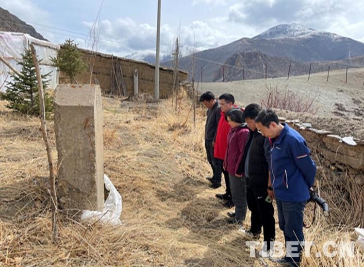 中心昌都采訪(fǎng)組一行在洛隆縣義章寺烈士紀(jì)念碑前肅立默哀。這塊紀(jì)念碑是1959年中國(guó)人民解放軍駐西藏部隊(duì)西藏平叛后設(shè)立的一座紀(jì)念碑。