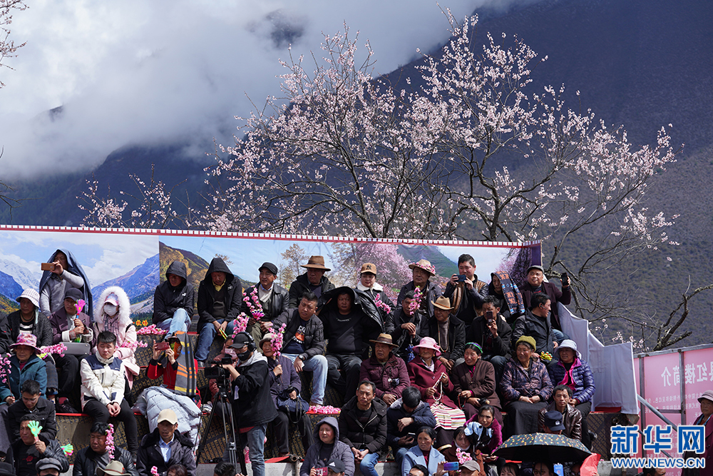 4月3日,林芝市第17屆桃花旅游文化節(jié)波密分會(huì)場開幕式上的觀眾。新華網(wǎng) 達(dá)娃 攝