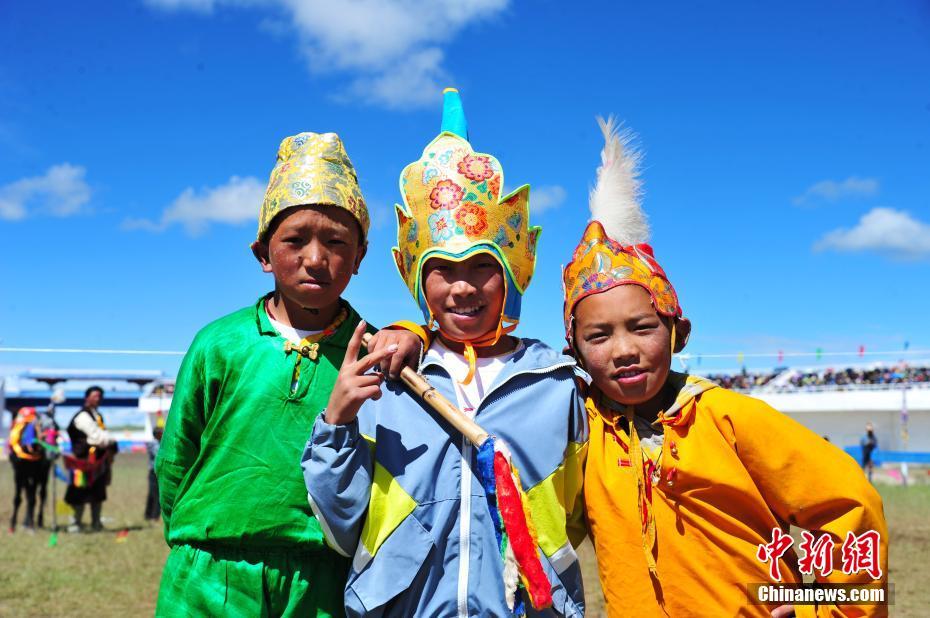8月12日,2020年那曲羌塘恰青格薩爾賽馬藝術節(jié)在西藏那曲舉行,參賽選手均為9至14歲的少年騎手。圖為參加完比賽的少年騎手合影。中新社記者 張偉 攝