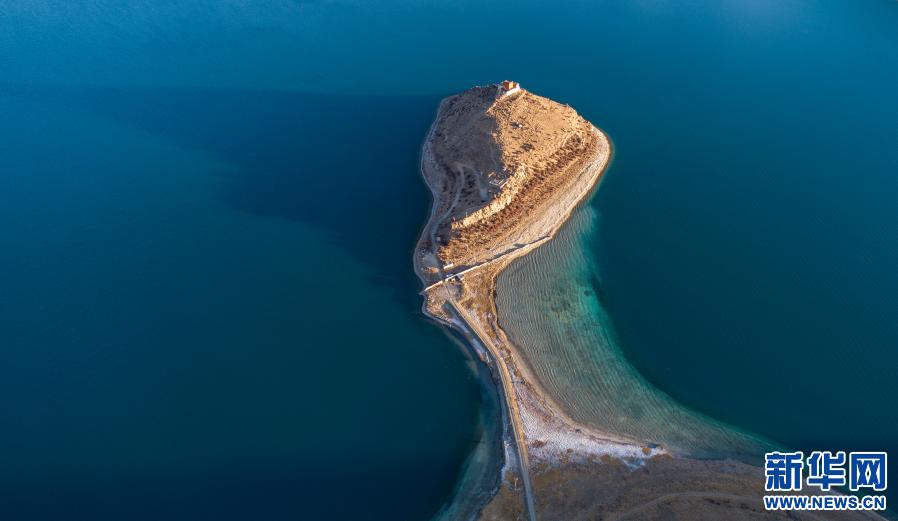 坐落于羊湖北岸一座小島上的日托寺(無人機(jī)照片,1月10日攝)。新華社記者 孫非 攝