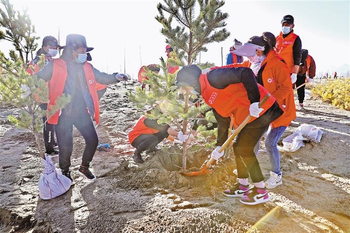 圖為山南市瓊結(jié)縣干部群眾開展植樹造林活動。
