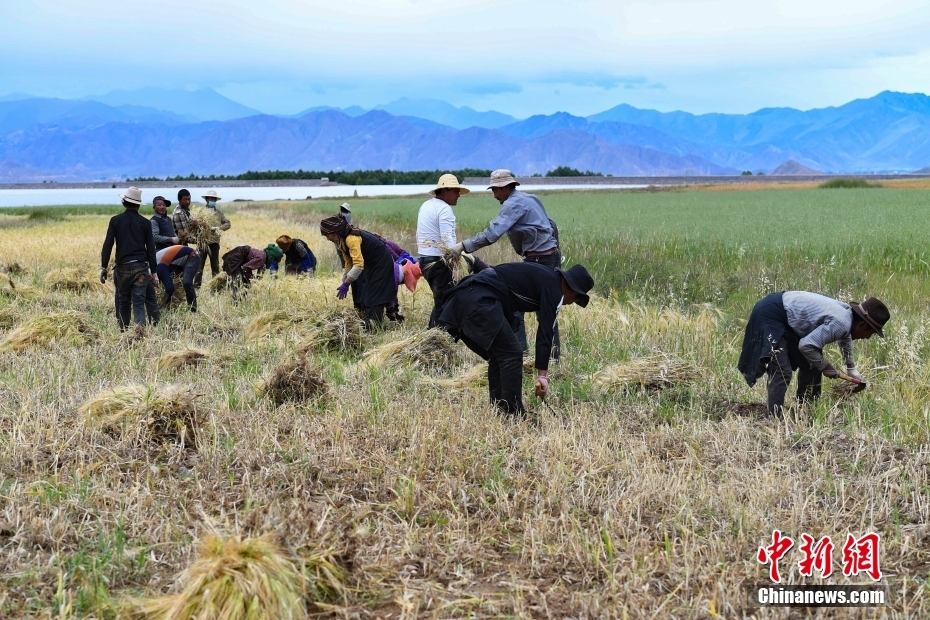 9月8日,西藏自治區(qū)拉薩市林周縣春堆鄉(xiāng)的農(nóng)民在搶收青稞。金秋時(shí)節(jié),拉薩河谷一帶青稞成熟,農(nóng)民在青稞田忙碌,一片繁忙景象。中新社記者 貢嘎來(lái)松 攝