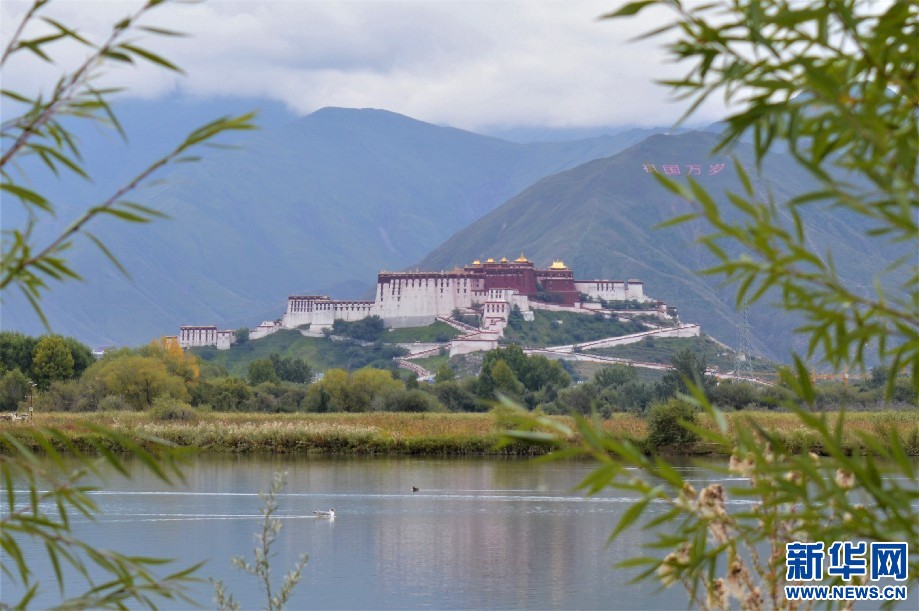 圖為拉魯濕地國(guó)家公園內(nèi)遠(yuǎn)眺布達(dá)拉宮(9月11日 攝)。新華網(wǎng) 貢桑央吉 攝(實(shí)習(xí)生)