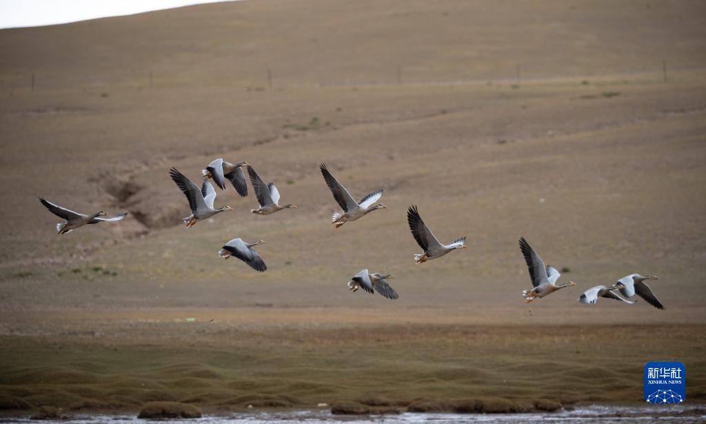 這是9月24日在羌塘國家級自然保護(hù)區(qū)拍攝的飛翔的斑頭雁。新華社記者 晉美多吉 攝