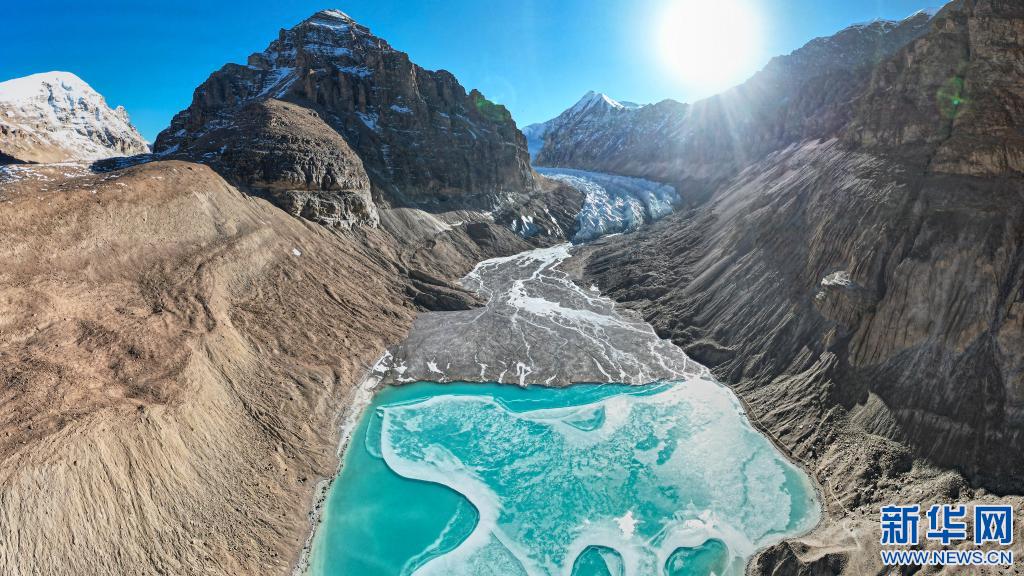 鳥瞰曲登尼瑪冰川(11月27日攝,無人機(jī)照片)。新華社記者 普布扎西 攝