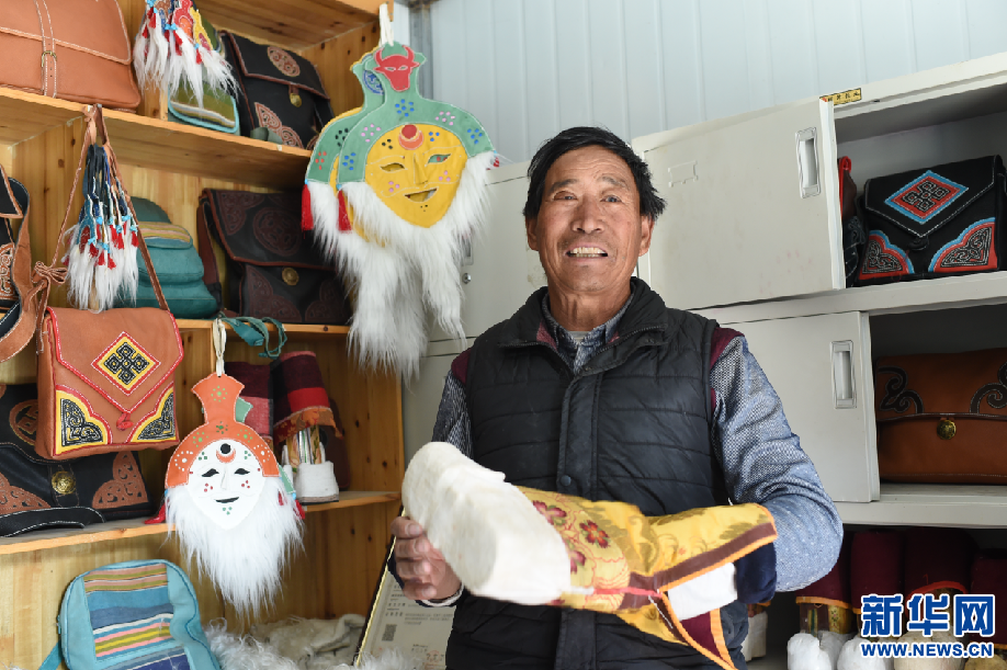 2月24日,曲水俊巴民族手工皮具制作傳承人次仁在展示皮具產(chǎn)品。新華網(wǎng) 旦增努布 攝