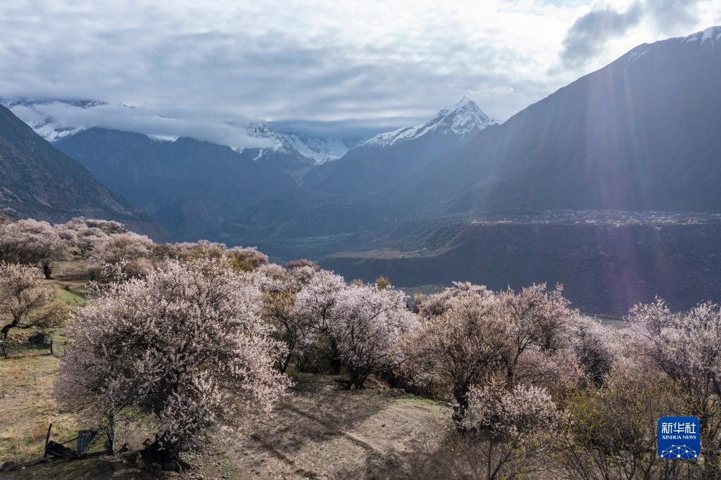 這是無人機(jī)拍攝的索松村,村子腳下是蜿蜒的雅魯藏布江(4月13日攝)。新華社記者 孫非 攝