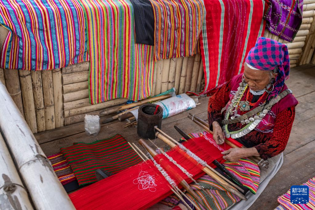 今年72歲的本央老人,是僜人服飾制作技藝西藏自治區(qū)級(jí)非遺傳承人。在西藏林芝市察隅縣沙瓊村,老人身著傳統(tǒng)的僜人服飾,在自家的涼亭里編織布料。