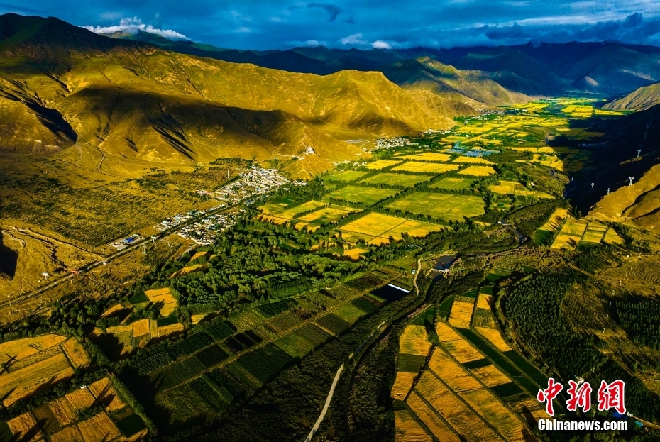 9月29日,西藏自治區(qū)召開中共十八大以來(lái)山南市經(jīng)濟(jì)社會(huì)發(fā)展成就新聞發(fā)布會(huì)。山南市委常委、常務(wù)副市長(zhǎng)牟永文在發(fā)布會(huì)上從綜合實(shí)力、基礎(chǔ)設(shè)施、人民生活水平、產(chǎn)業(yè)體系、邊境發(fā)展、生態(tài)文明、改革開放7個(gè)方面介紹了10年來(lái)山南市經(jīng)濟(jì)社會(huì)發(fā)展成就。資料圖為山南雅礱河谷的農(nóng)田。(無(wú)人機(jī)照片) 中新社發(fā) 張巍 攝