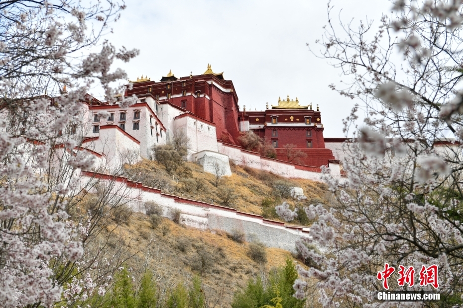 3月30日,在拉薩市南山公園拍攝的雪后布達拉宮。新華網(wǎng) 柑丹鴦琦攝
