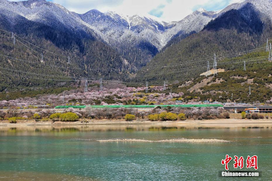 雪山、雅魯藏布江、高原復(fù)興號以及沿線的桃花。