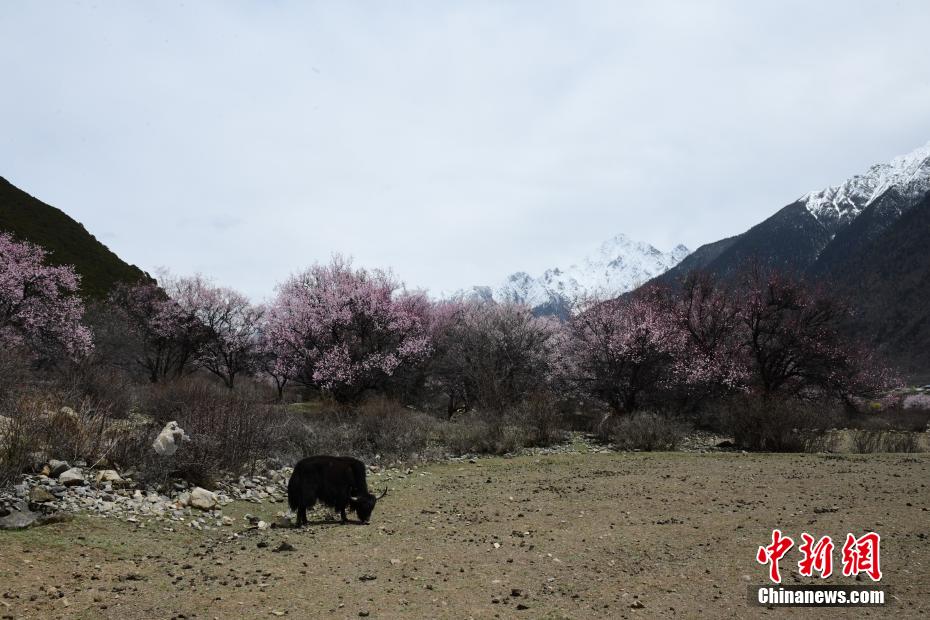 4月14日,西藏小“江南”林芝市工布江達(dá)縣桃花正盛放。這里海拔3400多米,森林覆蓋,雪山映照,桃花花期比西藏其他地方的更晚一些。當(dāng)?shù)剞r(nóng)牧民靠著“桃花旅游”增收。這里緊鄰國家森林公園、國家5A級旅游景區(qū)巴松措,是很多游客必打卡之地。林芝桃花節(jié)最負(fù)盛名,已舉辦20屆,各地桃花花期相繼從3月底一直至4月中旬,吸引著來自五湖四海的游客。圖為桃花盛放,遠(yuǎn)處雪山映照。貢嘎來松 攝