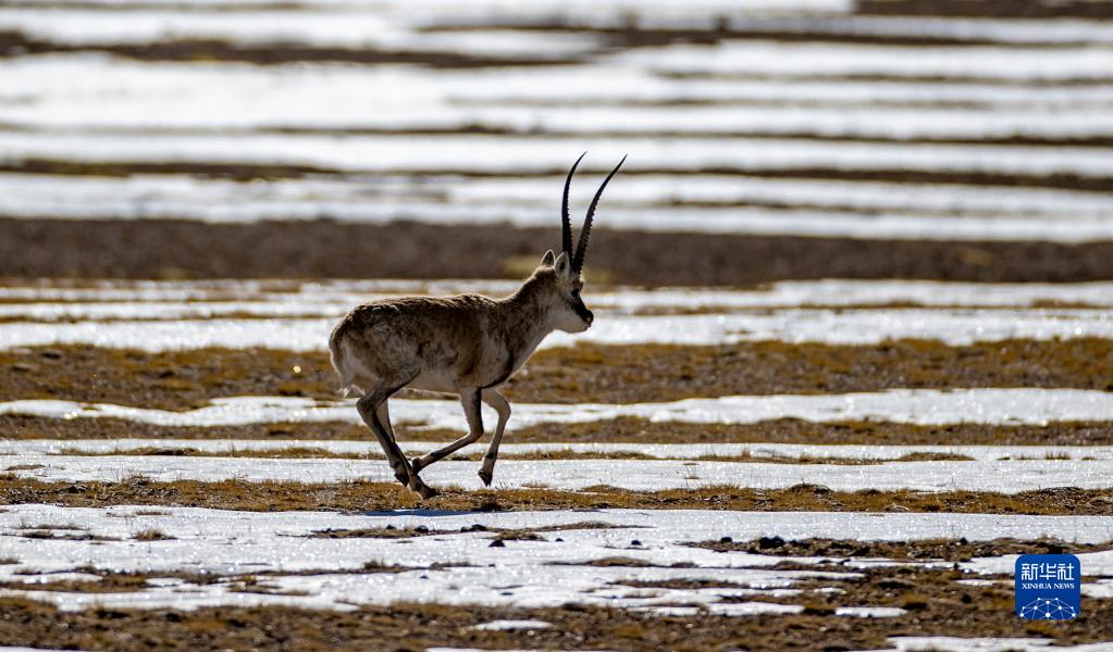 這是在羌塘國家級自然保護區(qū)那曲市雙湖縣區(qū)域內拍攝到的藏原羚(4月16日攝) 。新華社記者 格桑邊覺 攝