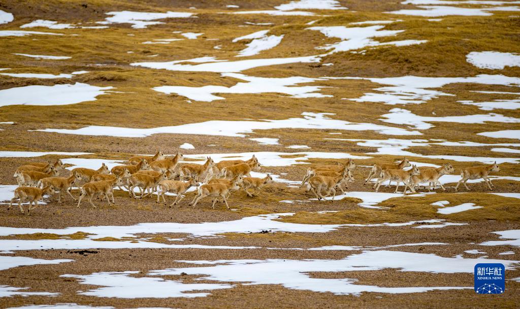 這是在羌塘國家級自然保護區(qū)那曲市雙湖縣區(qū)域內拍攝到的藏羚羊群(4月17日攝) 。新華社記者 姜帆 攝
