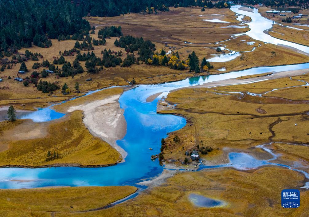 這是在林芝工布江達縣拍攝的景觀(無人機照片,10月28日攝)。新華社記者 姜帆 攝
