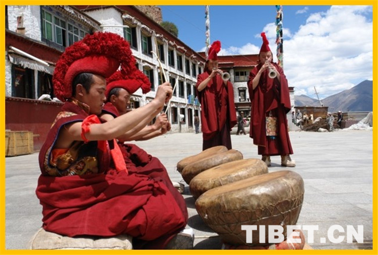 圖為直孔噶舉派音樂(lè)(佛教音樂(lè))。藏族傳統(tǒng)音樂(lè)特色鮮明,品種多樣,包括民間音樂(lè)、宗教音樂(lè)、宮廷音樂(lè)三大類。目前,18個(gè)傳統(tǒng)音樂(lè)類非物質(zhì)文化遺產(chǎn)項(xiàng)目被列入國(guó)家和西藏自治區(qū)級(jí)名錄。