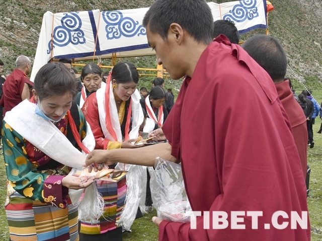 當?shù)匦沤倘罕娐犝f十一世班禪要來夏季牧場放牧點,紛紛趕著牦牛和馬在此等候,希望能瞻禮到大師的尊榮,為自己帶來賜福和好運。