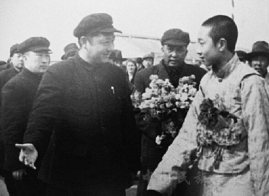 圖為1951年4月22日,習(xí)仲勛(前左)率領(lǐng)西北軍政代表熱烈歡迎途經(jīng)西安赴北京的十世班禪大師(前右)。圖片來源:中國網(wǎng)
