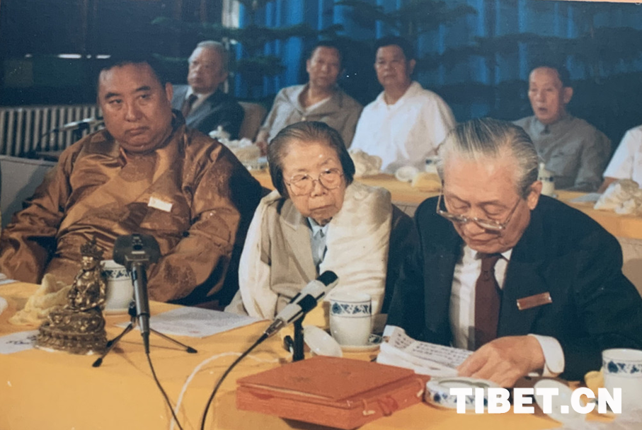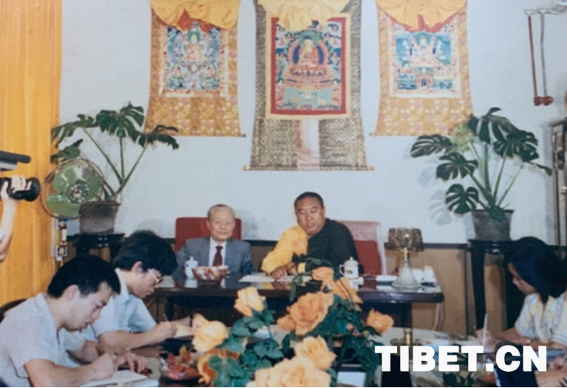 圖為1987年,十世班禪和趙樸初在中國藏語系高級佛學(xué)院成立儀式新聞發(fā)布會上接受媒體采訪。