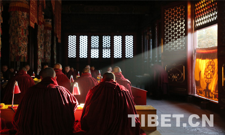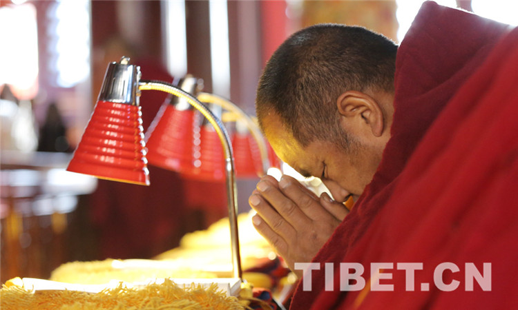 8時(shí)30分,法會(huì)開(kāi)始,教職人員按既定儀軌,誦讀經(jīng)文,虔誠(chéng)祈禱,法會(huì)現(xiàn)場(chǎng)肅穆莊重。(中國(guó)西藏網(wǎng) 記者/楊月云)