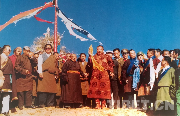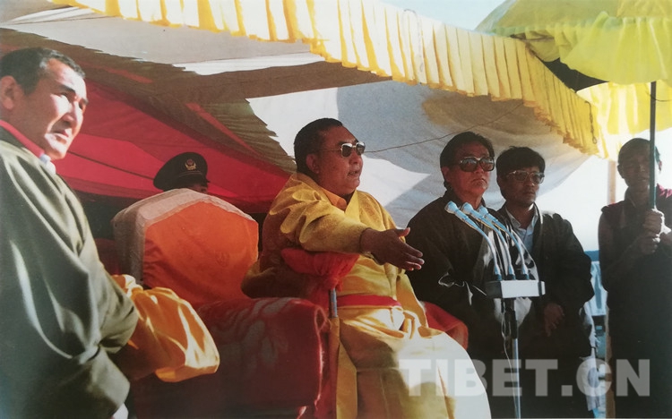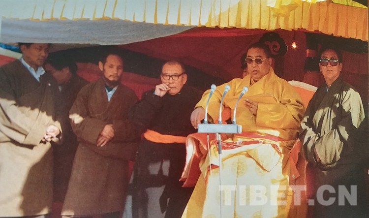 圖為十世班禪大師在幸福灘上誦經(jīng)祈禱,祝愿海南州昌隆、繁榮,各族人民幸福、吉祥。