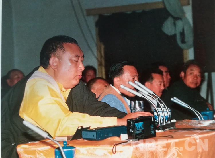 圖為十世班禪大師向海南州各族人民傳達黨和政府的親切慰問,宣傳黨的民族政策和宗教政策。